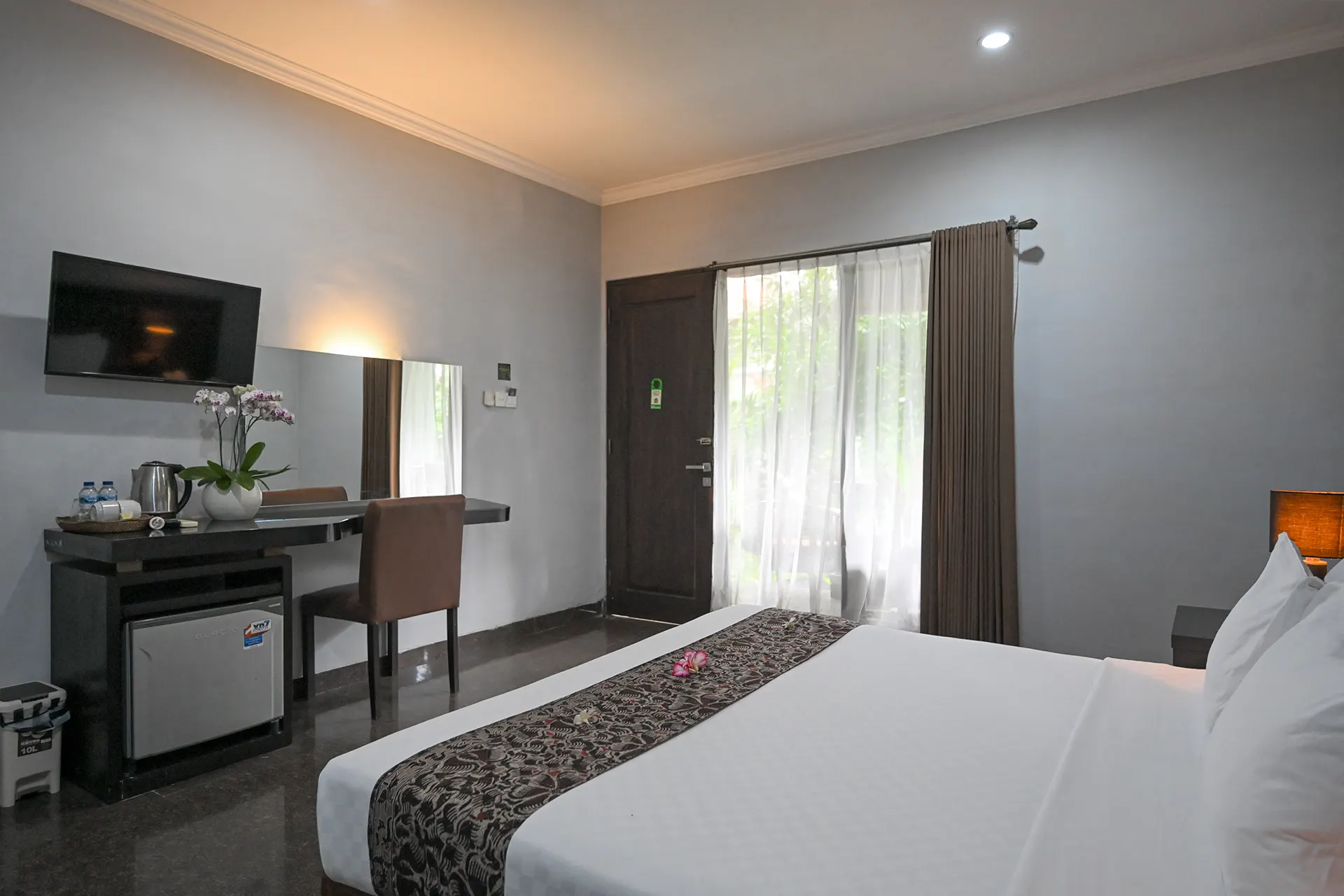 Our latest rooms, just recently completed, with private balcony views of the tropical Garden & surroundings. It is designed with elegance and is our latest offering. Combining modern facilities with traditional elements.
